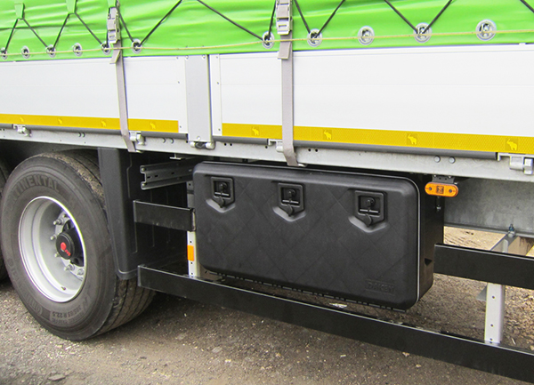 - Изделие подвешивается снизу автомобиля и крепится к раме грузовика, не занимая места в кабине или кузове, предоставляя легкий доступ к инструментам