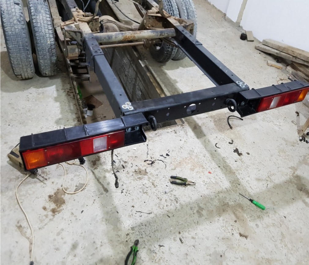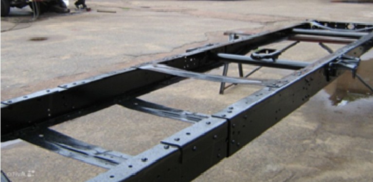 Удлинение заднего свеса производится с применением вставок в виде швеллера толщиной стенки 4мм из низколегированной конструкционной стали 09Г2С. Крепежными элементами являются стальные заклепки диаметром 10 и 12 мм. Крепеж поперечин осуществляется болтами с коэффициентом прочности 8,8. Длина удлинителя заднего свеса может варьироваться в зависимости от пожеланий заказчика.