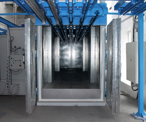 Наша компания ООО «ТПК Пегас-Регион» оказывает услуги порошковой покраски на оборудовании компании «TECHNOMAX», которое включает в себя камеру напыления с двумя постами нанесения порошковой краски компании «Nordson», а также печь полимеризации размером 3450 х 1700 х 1500.