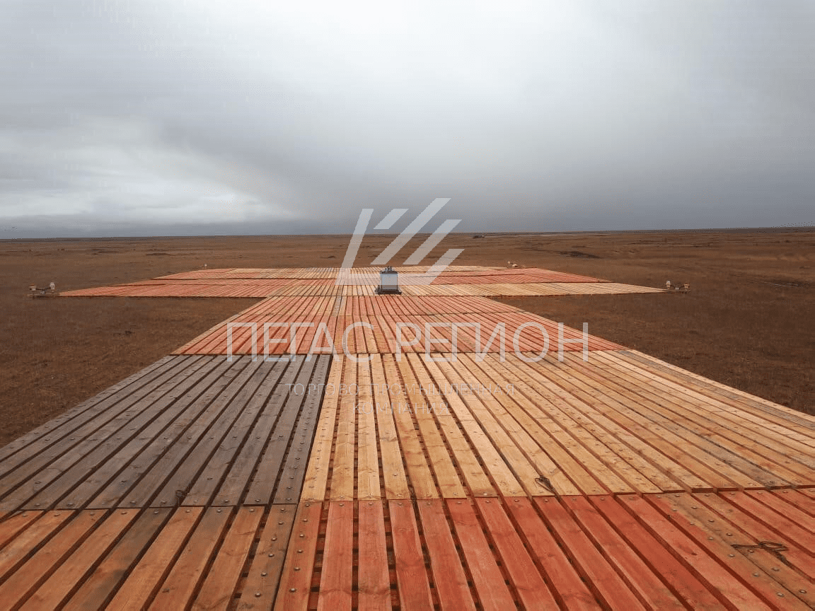 При строительстве вертолетно-посадочных площадок используются мобильные дорожные плиты (полимерные, деревянные, деревянные маты в металлическом каркасе)